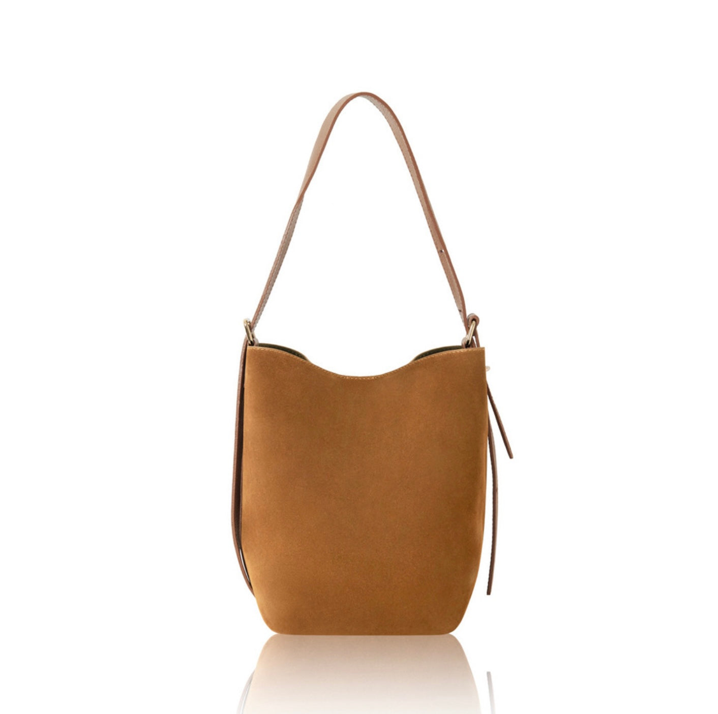 A high-quality suede leather bucket bag: simple, elegant, and versatile for any occasion. Featuring a classic design with an adjustable genuine leather wide strap, it can be worn as a crossbody or a shoulder bag. Crafted with premium details for a refined touch. This bag is crafted from premium suede, which is softer to the touch, more durable, and has a finer, more even surface compared to standard suede.