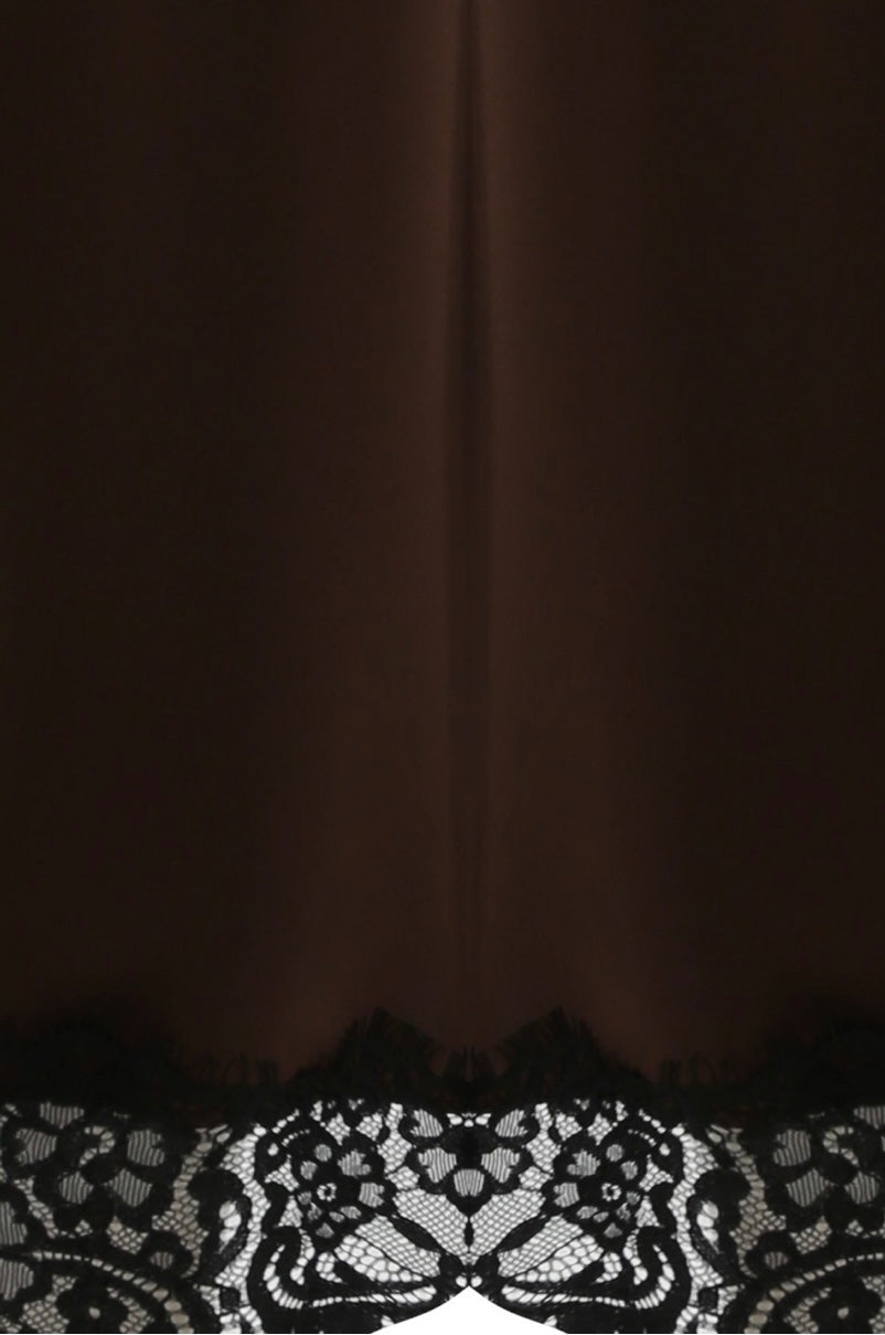 Libby Lace Trim Satin Slip Skirt | Chocolate & Black
